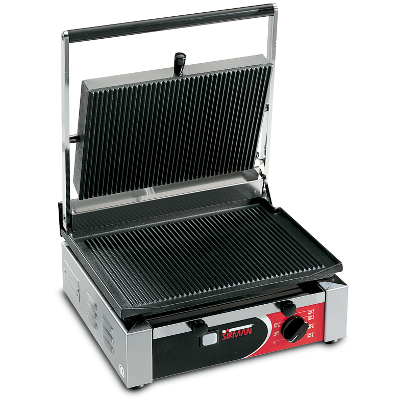 Adatta per cucinare qualsiasi tipo di carni, pesce, uova, verdure, formaggi, ovvero qualsiasi alimento portato alla cottura su piastra; ideale per toast farciti, panini caldi di vario spessore e dimensione, Facile da maneggiare e da posizionare offre in poco spazio una grande superficie di lavoro, Disponibile con piastre in ghisa sia lisce che rigate o in acciaio inox lisce, Piastre in ghisa con trattamento di vetroceramicatura, massima robustezza e durata, ottima conducibilità termica, estrema facilità di pulizia, Piastre superiori con durezza regolabile ad esigenza dell’operatore, Piastra superiore autobilanciata, Resistenze corazzate aderenti alle piastre per una ottimale conducibilità termica, Termostato regolabile fino a 300 °C, Ideali per grossi carichi di lavoro e uso continuo, Timer meccanico opzionale